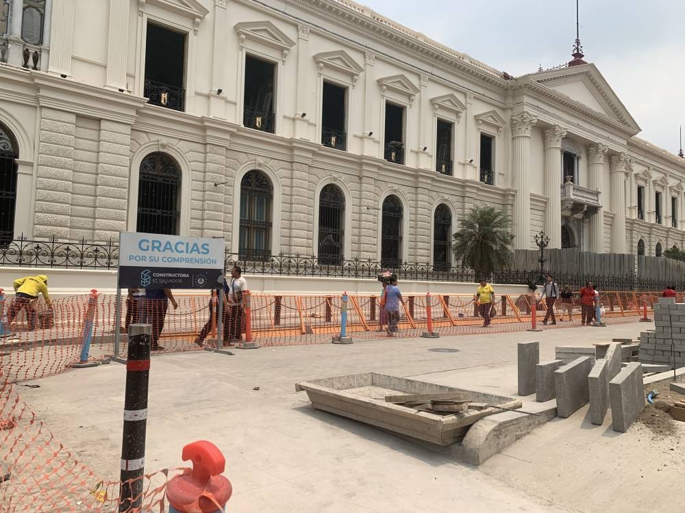 Los alrededores del Palacio Nacional, incluida la Plaza General Gerardo Barrios, han sido adornadas con jardineras de mármol y adoquines.