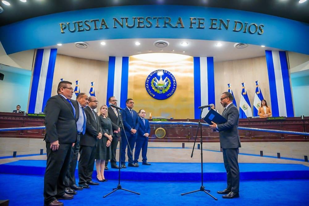 La Asamblea también eligió y juramentó la noche del lunes un total de siete magistrados propietarios de la CSJ, todos propuestos por Nuevas Ideas, cinco magistrados propietarios para el periodo 2024-2033 y dos magistrados propietarios para llenar magistraturas vacantes correspondientes al periodo 2021-2030.