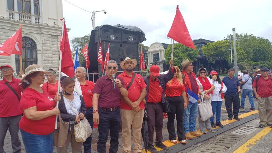El secretario general del Frente Farabundo Martí para la Liberación Nacional (FMLN), Manuel Flores, participó con un grupo de efemelenistas en la marcha de este 15 de septiembre, en protesta por despidos y reformas constitucionales.