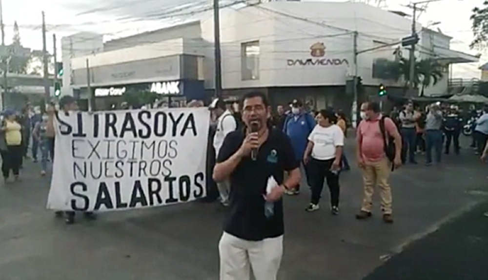 “Este día el sindicato Sitrasoya junto a los trabajadores de los diferentes departamentos estamos desarrollando esta actividad de carácter pacífica porque hasta el 10 de enero no se nos han cancelado nuestros salarios atrasados”, reclamó un miembro del Sitrasoya durante la manifestación en el bulevar del Ejército.