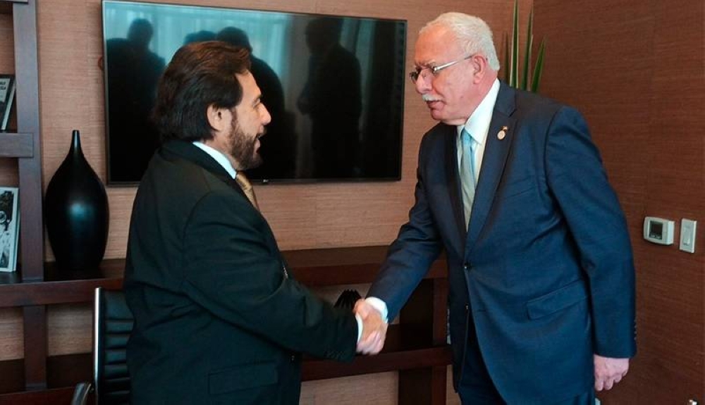 El vicepresidente de la República, Félix Ulloa, pidió al ministro de Relaciones Exteriores del Estado de Palestina, Riyad al-Maliki, establecer una sede del banco de ese país en El Salvador.