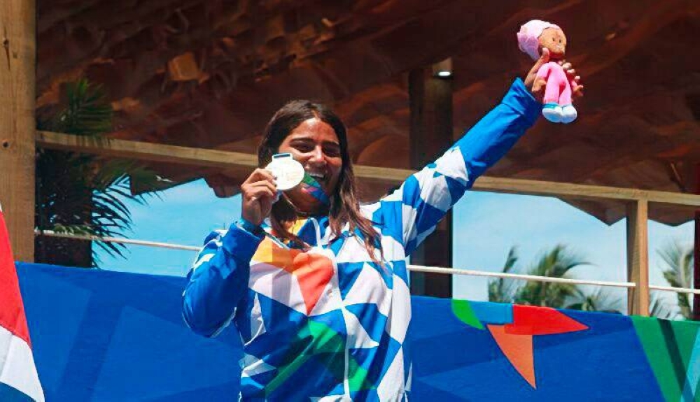 Sindy Portillo fue premiada por ganar el oro en Longboard femenino.