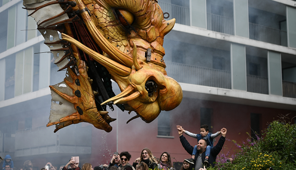 El caballo dragón llegó a Toulouse en partes en febrero de 2022, y el fin de semana se mostró por primera vez al público.